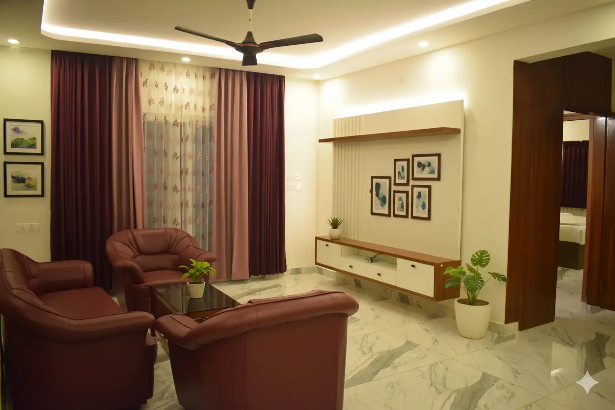 Unwind in Mysore with premium King size comfort. Gain access to a sophisticated, spacious common living area—offering you more than